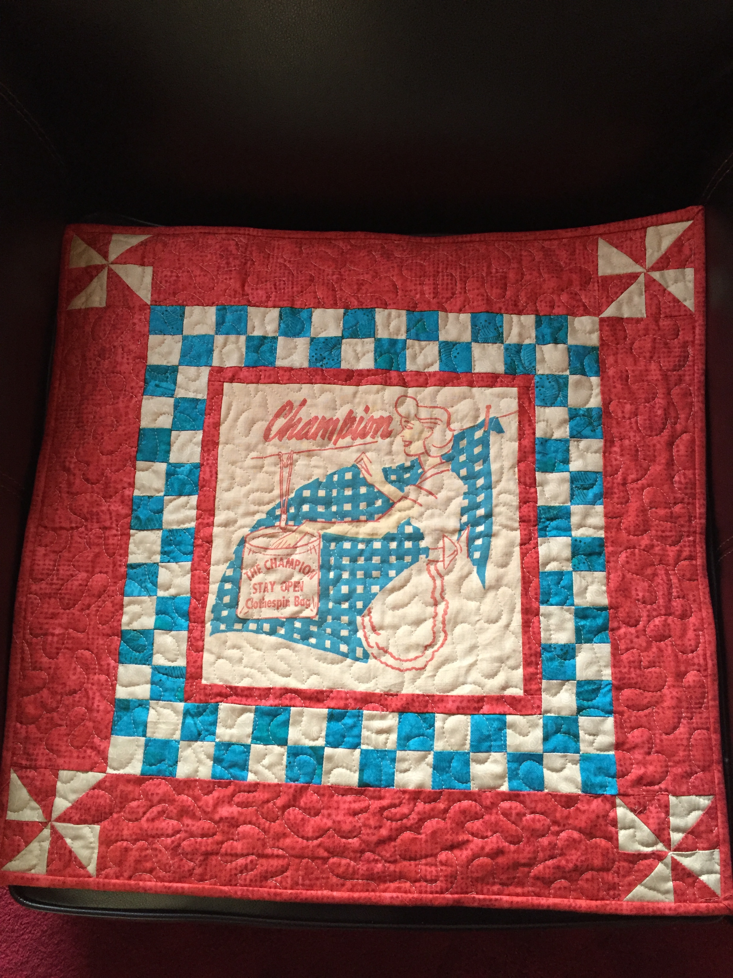 I’ll post this Laundry quilt pattern soon. If you’re interested in making one of your own, check on-line for funky vintage clothespin bag options.
